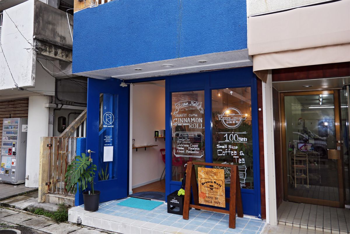 沖縄市コザの住宅街の一角にある「Brown Roll(ブラウンロール)」。ぱっと目をひくブルーの外観が目印です。このお店は「シナモンロール」の専門店。数ある専門店のなかでも、シナモンロールだけを扱うお店は珍しいですよね。