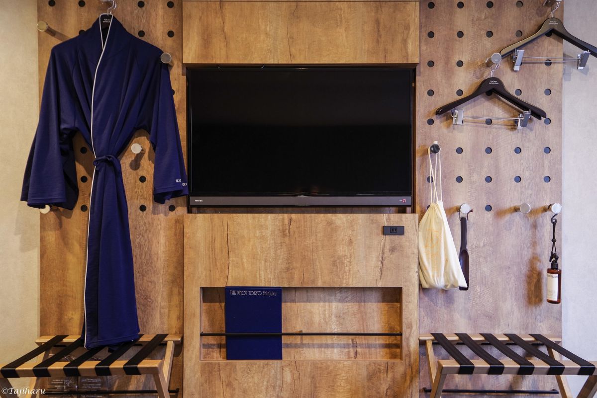 さらっと羽織れるガウンは、お部屋でリラックスするために欠かせないアイテム。最近、海外のデザイナーズホテルでもよく見かける、壁にアメニティがかかったオシャレなスタイルは、ニューヨークのNoMadエリアにあるホテルのような雰囲気です。