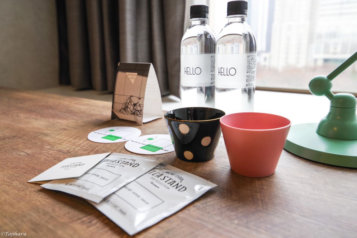 こだわりは各部屋にあるカップにも。紅茶、珈琲、お酒、なにを飲むにも使いやすいサイズのカップは、長崎県で作られる「MARUHIRO(マルヒロ)」の波佐見焼のそば猪口です。それぞれの客室でデザインが違っています。