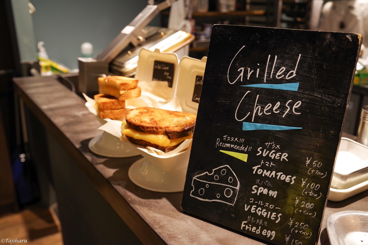 「MORETHAN BAKERY」で一番人気の商品は「グリルドチーズサンド」(550円)。二種類のトーストから選べて、追加料金でカスタマイズができます。