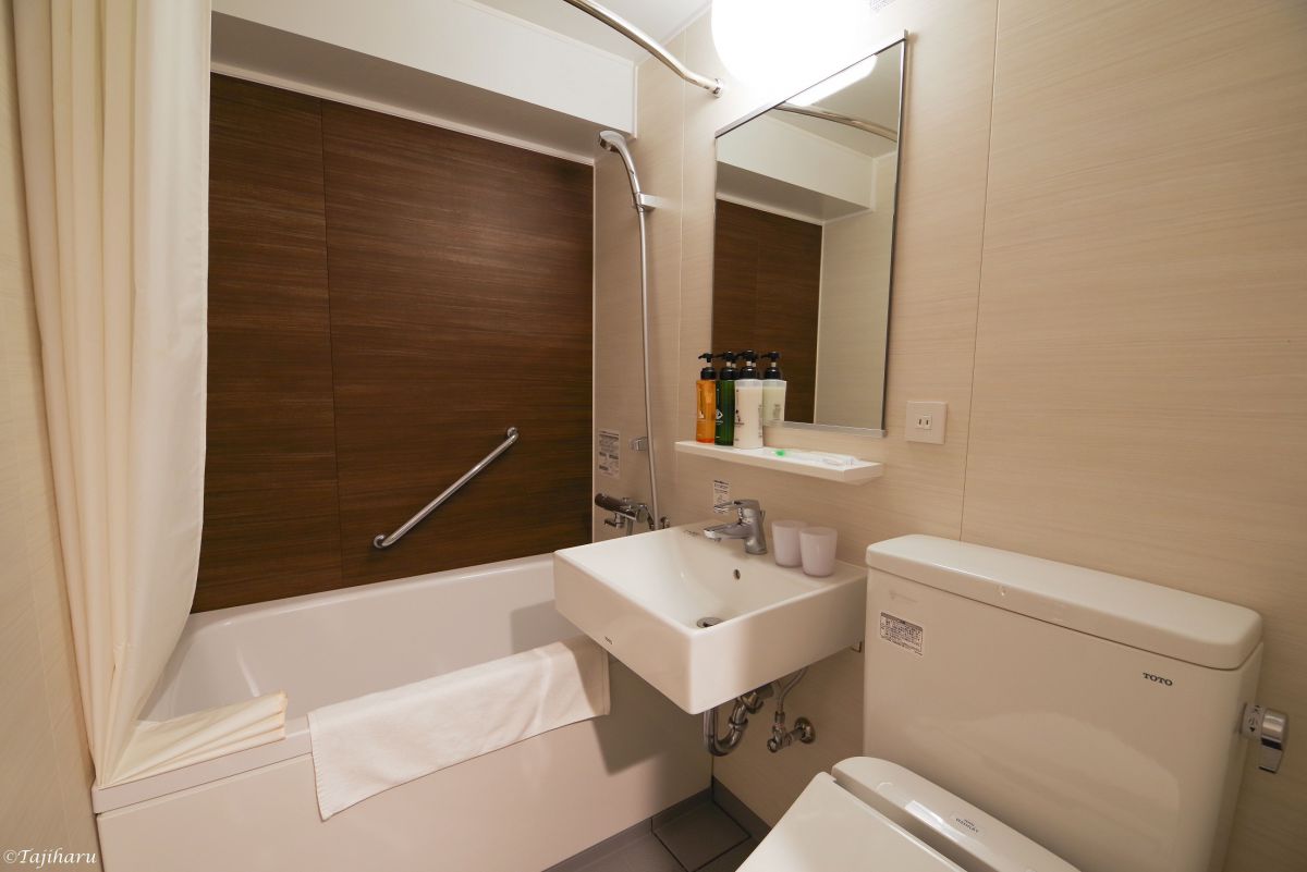 バスルームも清潔感があり、シャンプーやボティソープ類、歯磨きセットなど基本的なバスアメニティはすべて用意されています。
