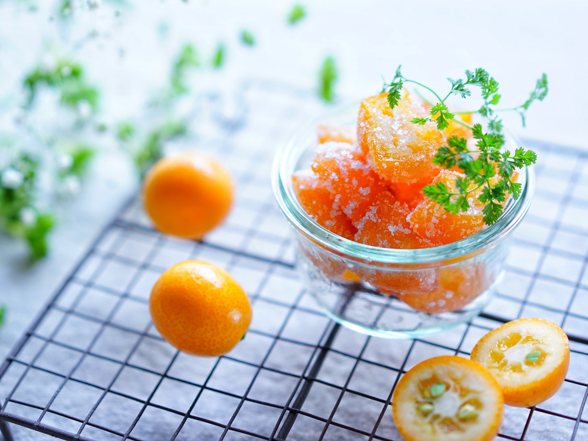 この時期、産地直売所などに行くと、たくさんの金柑が並んでいます。大きさや色もさまざまな金柑。今回は、お茶請けにはもちろんのこと、お菓子作りの材料としても優秀な、セミドライ金柑のレシピをご紹介します。