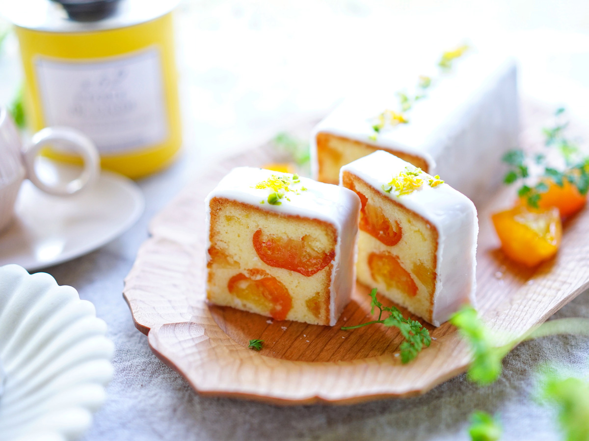 通常レモンで作るウィークエンドを、金柑で作ってみました。色味もかわいくて、酸っぱいお菓子が苦手な方にも喜んでもらえるかと思います。