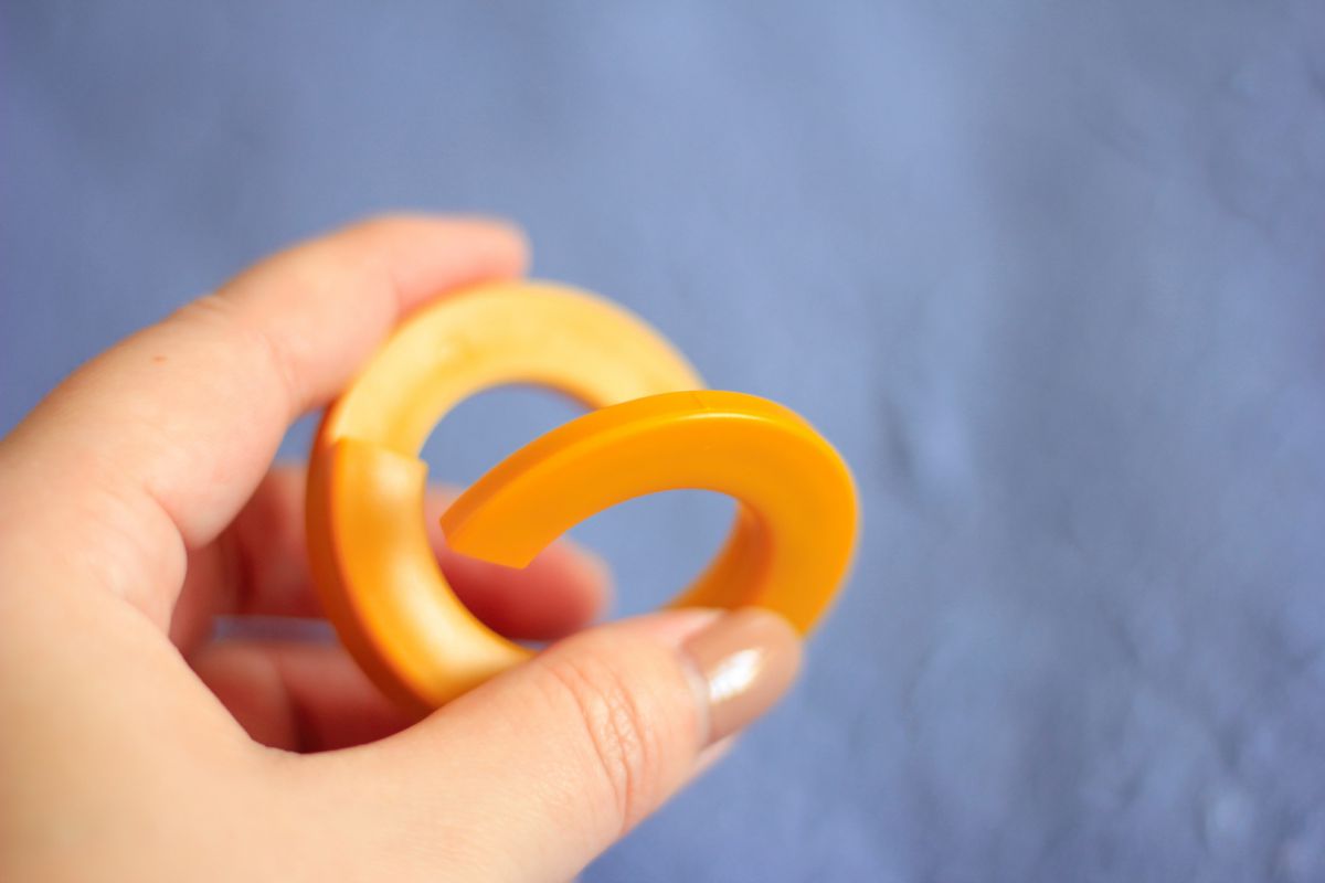O字のフックは、バッグの取手につけてキーリングとして使ってもよさそうです。