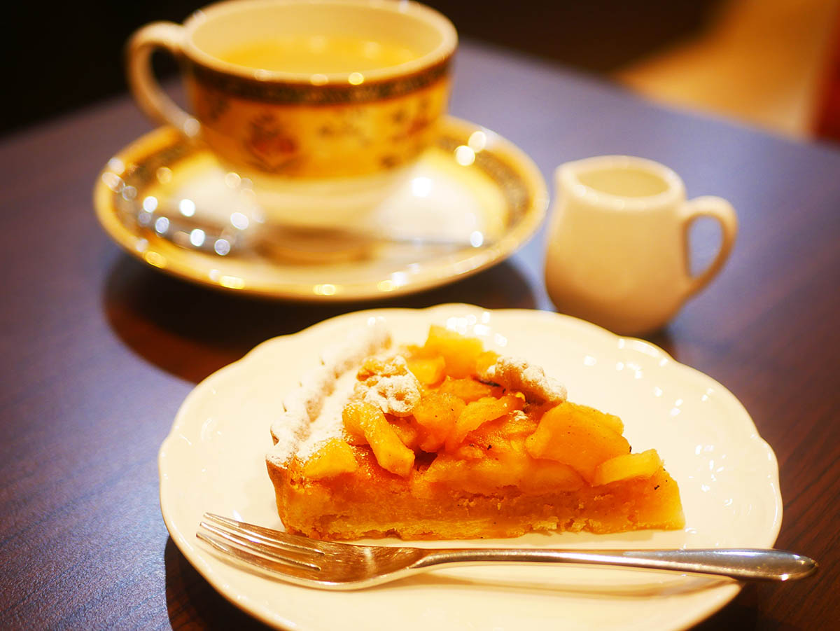 焼きフルーツタルト(単品378円)は、片町店限定の季節メニュー。表面サクッと、中はしっとりな生地で、季節の焼きフルーツの香ばしさが口の中いっぱいに広がります。春ぐらいまではリンゴですが、小ぶりなのにすごい満足感!コーヒー(432円)などドリンクとのセットでいただけば、54円引きでいただけます。