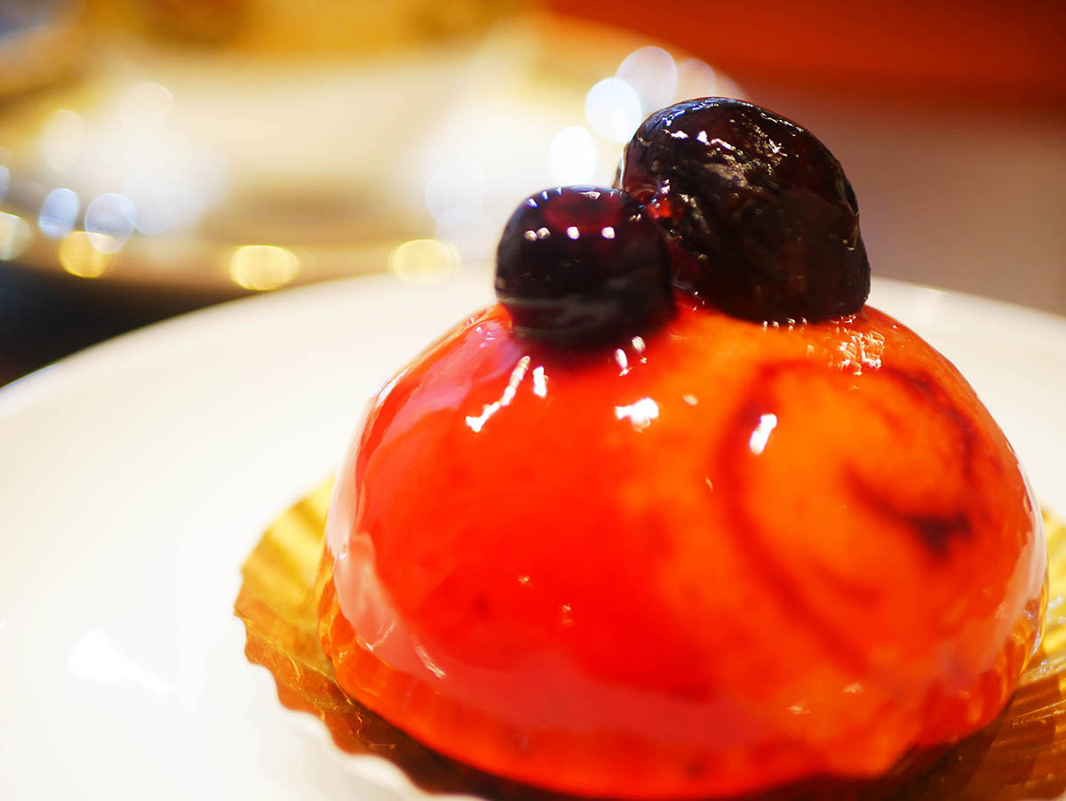 木いちごジャムロールのデザインがかわいいカジノ・イヴェール(432円)は、独特な口どけから優しい甘みが広がります。いちごムースの中にカシスのクリームが入っており、ふわふわなくちどけが印象的。イチゴ風味のソースでコーディングした光沢のある見た目は高級感もあって、フォークをいれるのがなんだかもったいなく感じてしまいました。