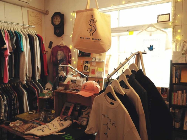 こだわりのセレクトショップならではの、衣類やファッション小物がいっぱい並ぶ店内。おしゃれなZINE(自主出版物)などの書籍もあり、個性的なアイテムの数々に目を奪われます。あれもこれもとつい欲張ってしまうけれど、ここは心を落ち着けて、これぞというお気に入りを見つけたら即買いです。