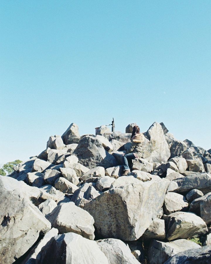 ピンクの建物を出たところにある「昆虫山脈」という名前がついた岩の山。ここを登っている人間が昆虫に見立てられているそうです。