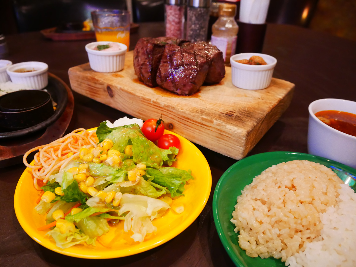 大迫力のステーキに圧倒!サラダやデザートは食べ放題