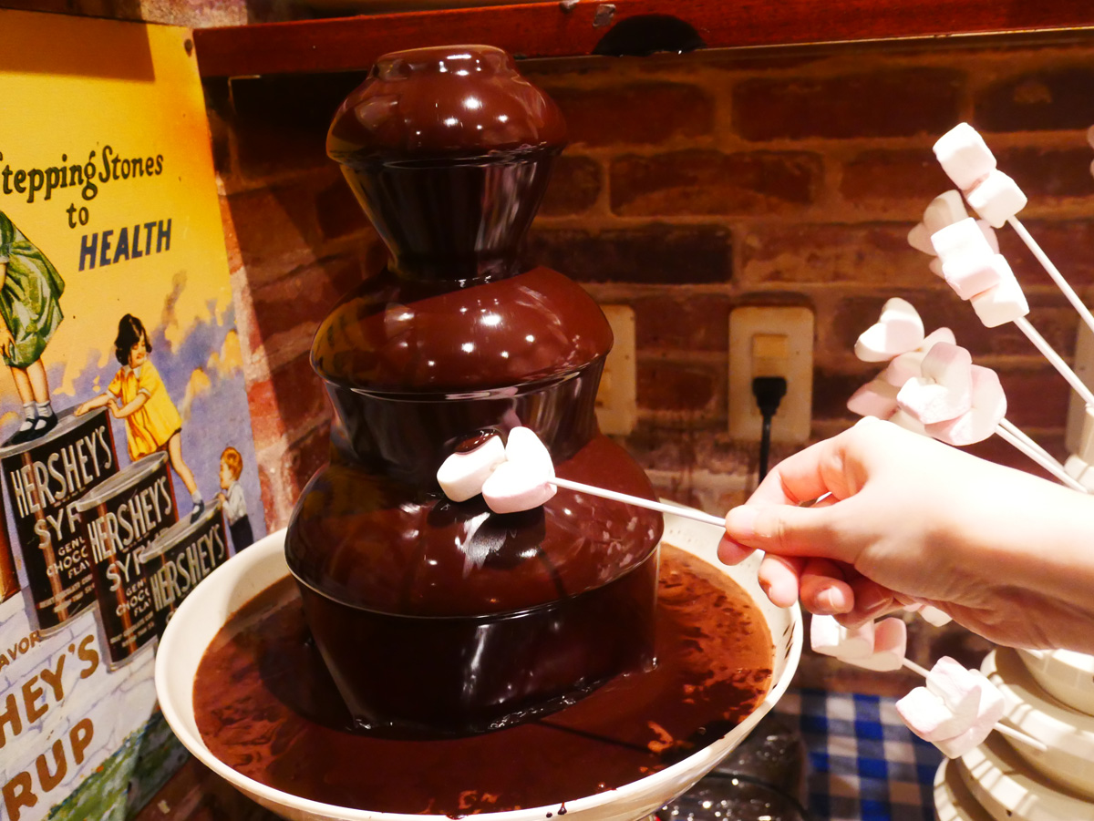 さらに、土日祝日限定でチョコレートフォンデュがいただけます。ハート形のマシュマロやバナナにチョコレートをたっぷり絡ませれば、思わず笑顔がこぼれるはず。自分で作って自分好みに食事を楽しめるのも、この店の魅力です。
