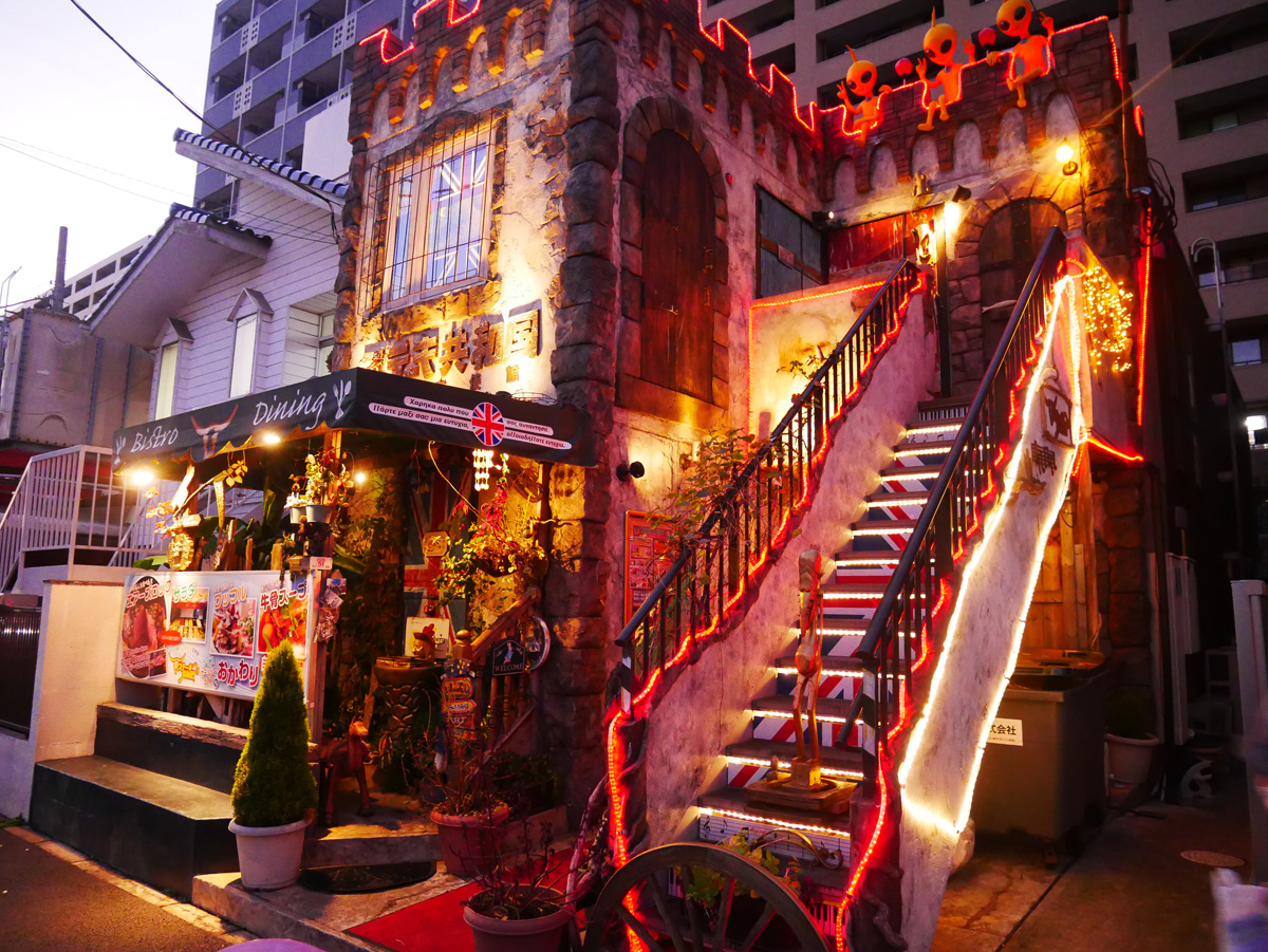多くのイベントが開催される幕張メッセにもほど近い、京成電鉄幕張駅から徒歩約6分。にぎやかな装飾にエイリアンの人形がひときわ目を引く店が、「ステーキ共和国 幕張大使館・本館」です。まるでテーマパークのような外観に、心が躍らずにはいられません。