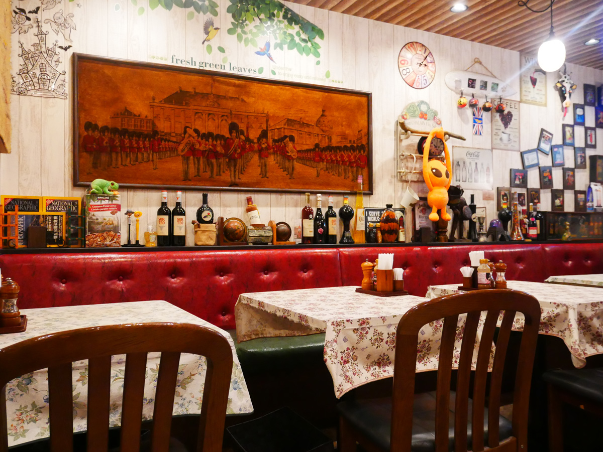 店内はアメリカンな雰囲気で、社長が大好きというエイリアンの人形がいたるところに飾られています。半個室の10人席も用意されているので、大人数での女子会にも最適。豪華なステーキを1000円台から味わえるだけでなく、すべてのメニューにサラダ、フルーツ、ライス、牛骨スープ、ワッフルの食べ放題と、ドリンクバーがついているという抜群のコスパが人気で、地元では知らない人がいないほど。