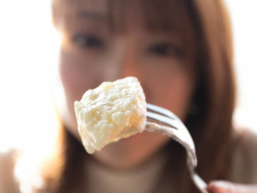 ナイフを入れると生地がぎゅっとモチモチにつまっているのがわかります。ハワイのパンケーキのレシピを使用していて、もっちり感を出すために、ヨーグルトがたっぷり入っているそう。