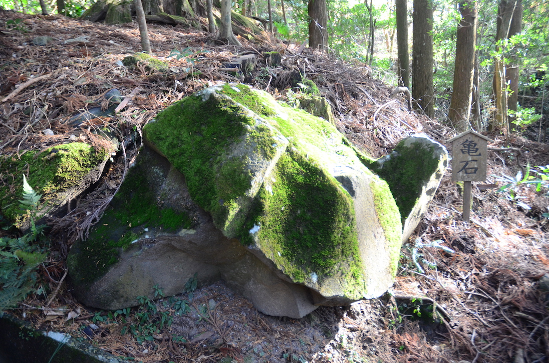 亀の形をした自然石で、「神様との約束を破った亀が石にされた」という言い伝えが残っています。見れば見るほど本物の亀のように見えてくるのが不思議。今にも動き出しそうです。