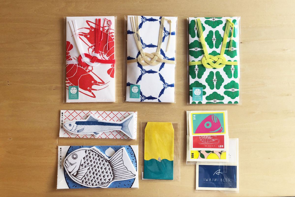 雑貨類も充実しています。デザインがかわいいイワシの一筆箋324円やご祝儀袋734円、ポチ袋324円など、どれにしようか迷いますね。