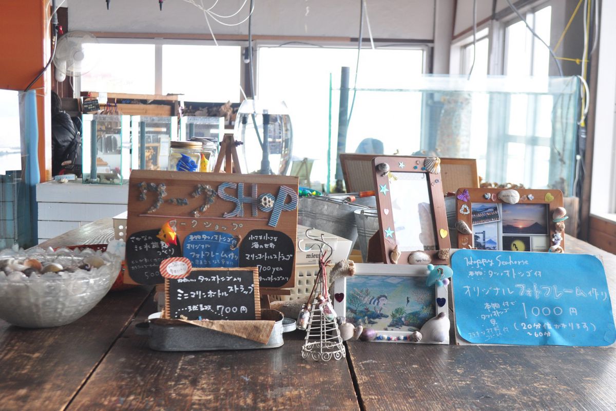 予約不要で体験できるワークショップスペースでは、タツノオトシゴ入りミニホルマリンボトル、ミニ水槽、ストラップ各700円、フォトフレーム1000円など、旅の思い出を持ち帰れるさまざまな体験が用意されています。