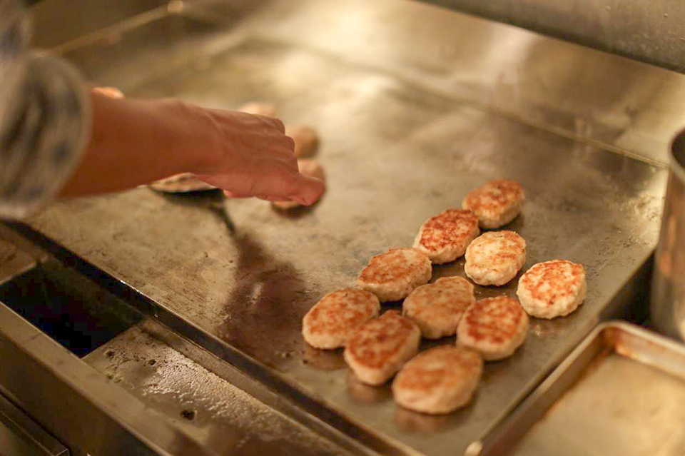 素材の配合やタネをこねる時間、焼き加減など、あらゆる工程で試行錯誤を重ねて完成したつくね。柔らかくなめらかな口当たりとジュワリとあふれ出る肉汁が何よりの自慢です。あまりに柔らかいため串に刺すことができず、このハンバーグのような形に行き着いたのだとか。