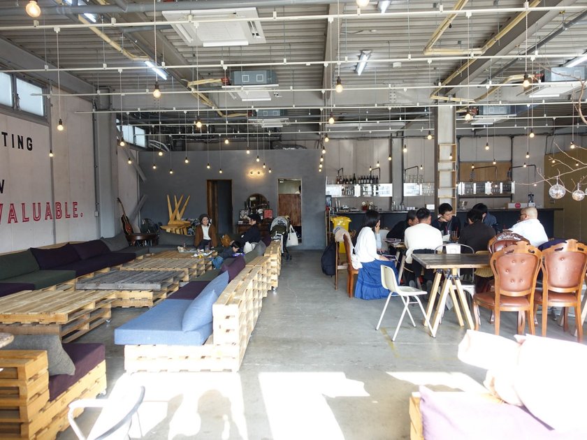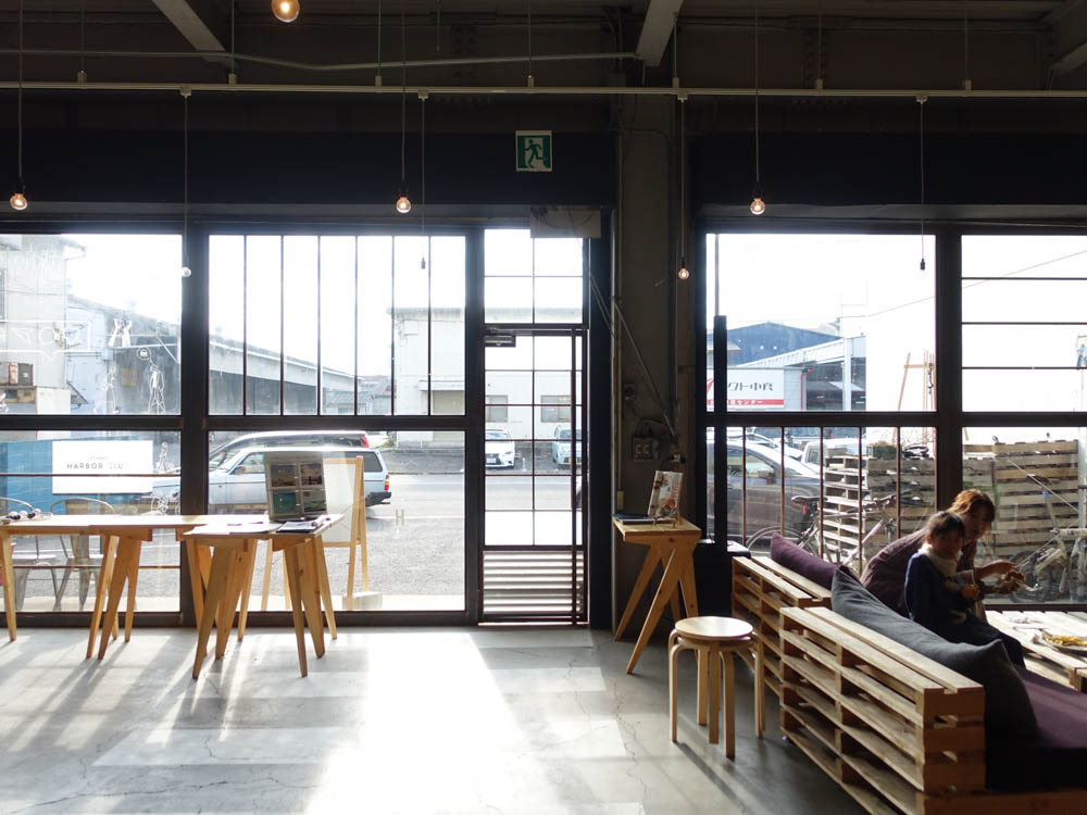 「LIFEMARKET HARBOR CLUB」は、倉庫のような広々とした空間が特徴のカフェ。開放感たっぷりで、インテリアや装飾なども、まるで海外にきたような気分になれるものが揃っています。