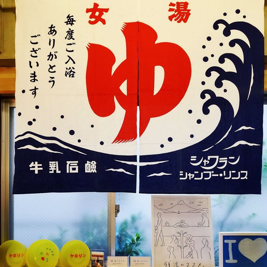 銭湯のれんやケロリンの桶と、まるで銭湯に来た気分に(笑)。