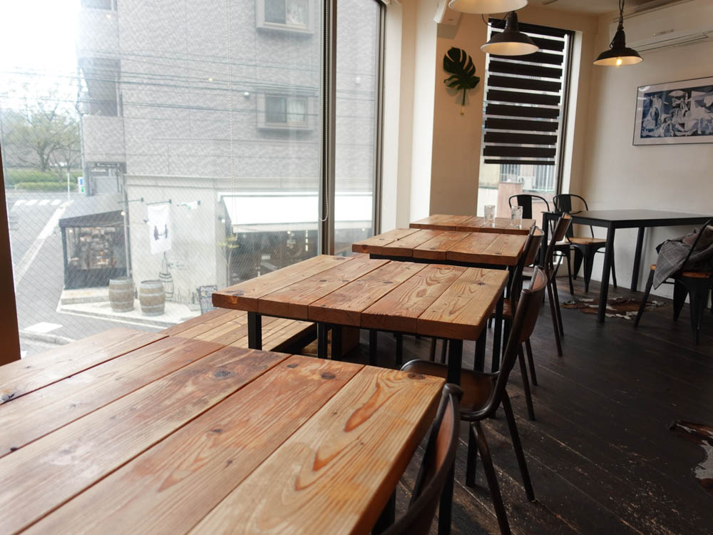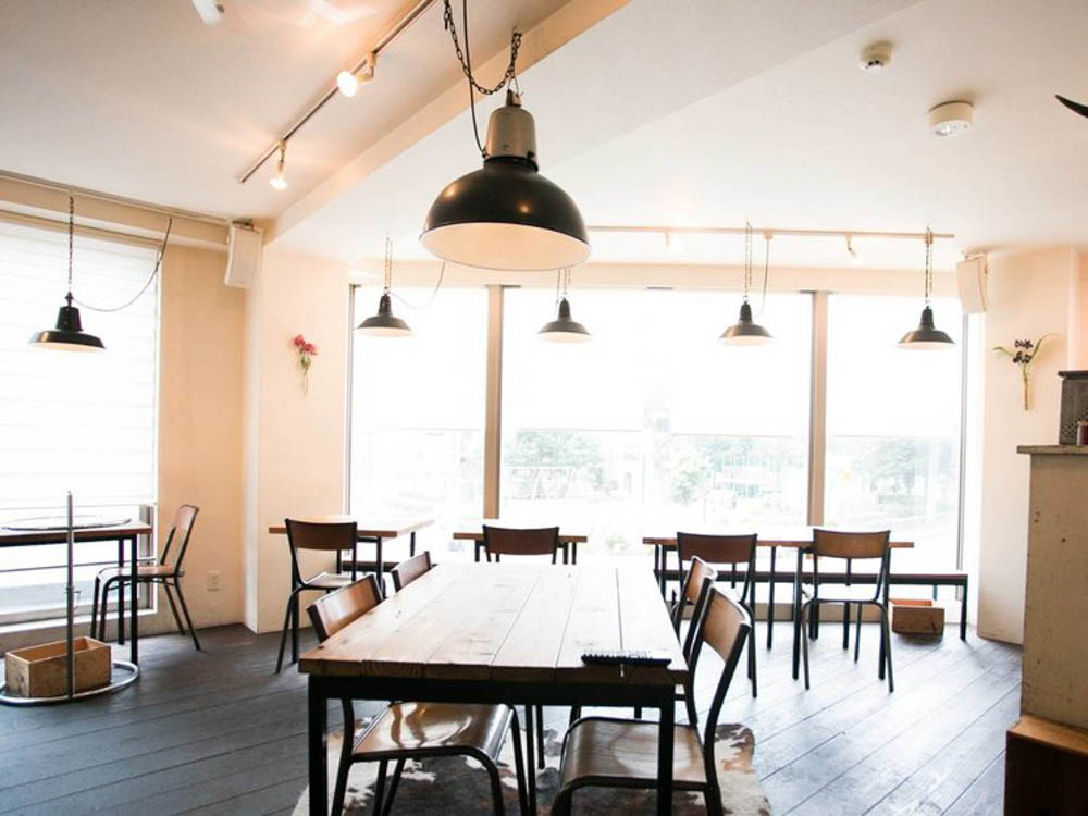 ビルの2階に上がり、扉を開けると広がる明るい店内!大きな窓から差し込む太陽の光が心地いい。窓側の席では外の景色を楽しむこともできます。