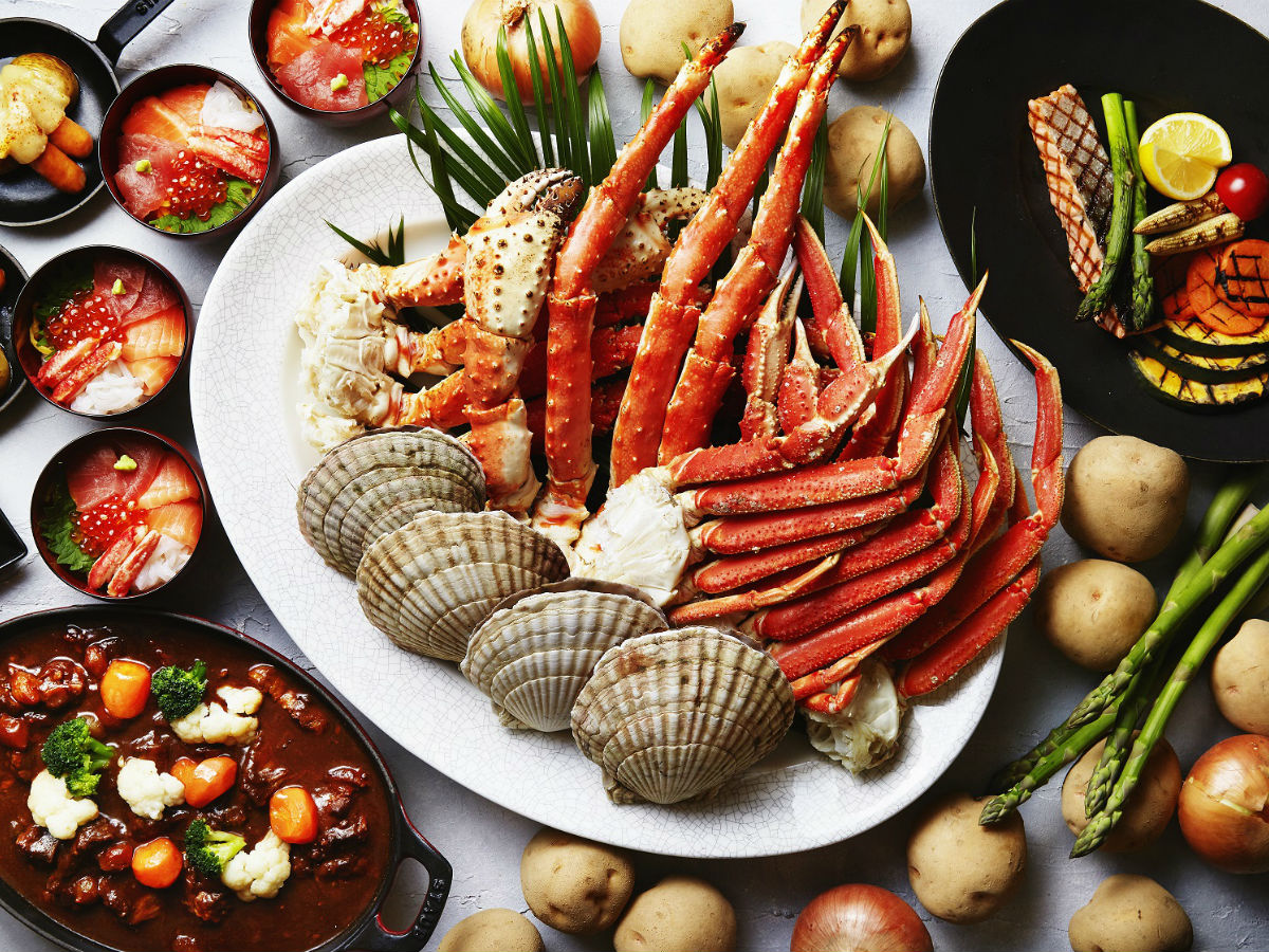 同2階の「カスケイドカフェ」では2019年3月20日(水)~4月26日(金)まで、人気の「北海道ディナーブッフェ」第2弾も開催。鮭・イクラ・ズワイ蟹・イカ・松前漬けなどを自由に好きなだけ盛り付けられる「海鮮丼」をはじめ、道南エリアのご当地料理や旬の食材を使ったメニューが並びます。そのデザートコーナーでも、さくら風味のゼリーやさくらマカロン、桜餅などのさくらスイーツが楽しめます。