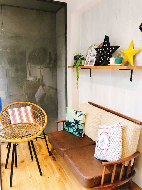 サーフボードやシェルのインテリア小物などがセンス良く飾られていて、レッスンが始まる前から気分はすっかりサーフガール!レッスンの前後は自由に使えるので、少し早めに来てゆったり過ごすこともできますよ。