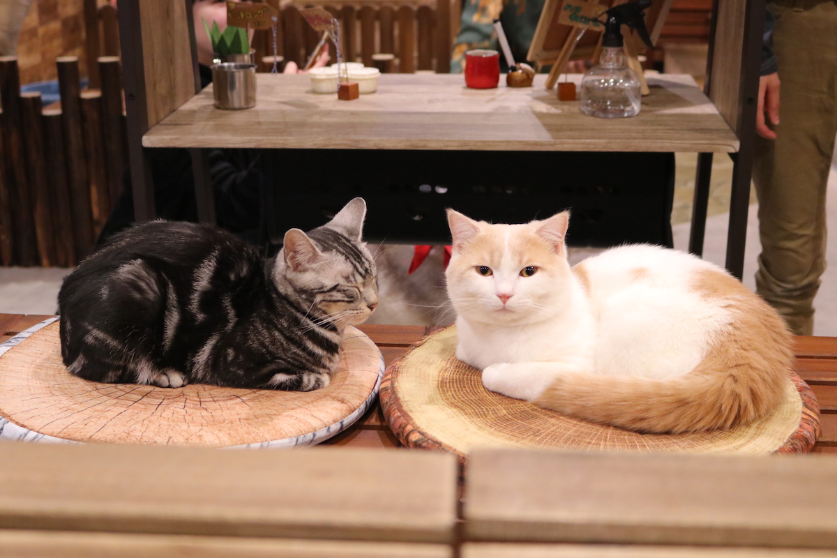 「ピクニックタイム」(11時30分~16時30分)では、日中に活動する動物たちがお目見え。店内でいちばん頭数が多いのは猫で、ご飯を食べたりくつろいだりといろんな姿が楽しめます。抱っこしたり無理にさわったりするのは禁止ですが、とても人懐っこいので自主的にヒザに乗ってくれることも!