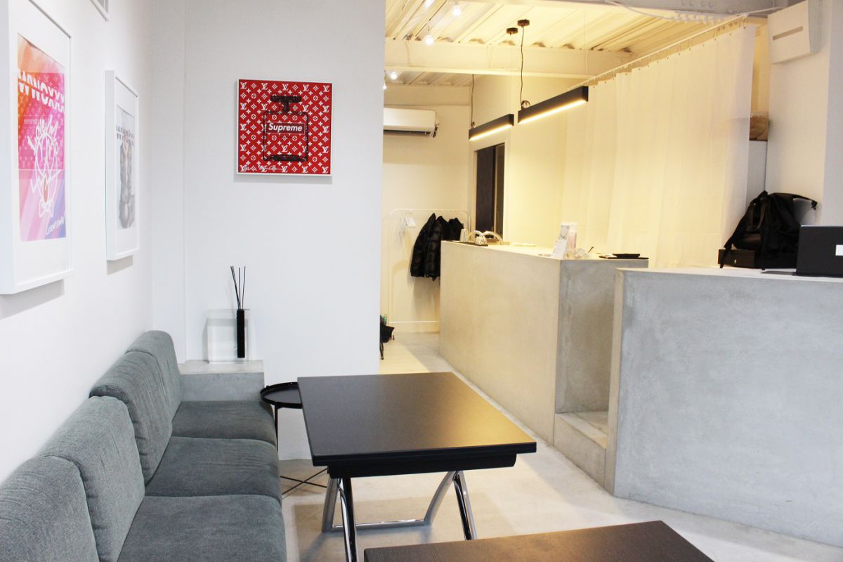 中に入ると、会社の事務所なのにカウンターバーがありとてもお洒落な雰囲気!毎週土曜日には、ここでメロンケーキのカットショー(予約制、1カット付1700円)が行われます。貸し切りでパーティや女子会などの利用も可能。