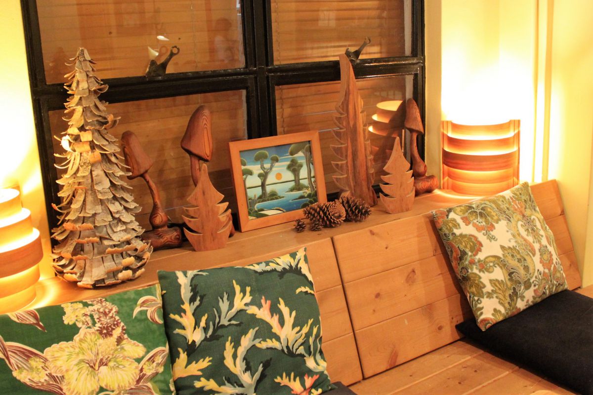 木のぬくもりが感じられる、ゆったりとした店内。非日常が心地よい空間ではランチからお茶、もちろんアルコールもOK!お気に入りの席で、思い思いの時が流れています。