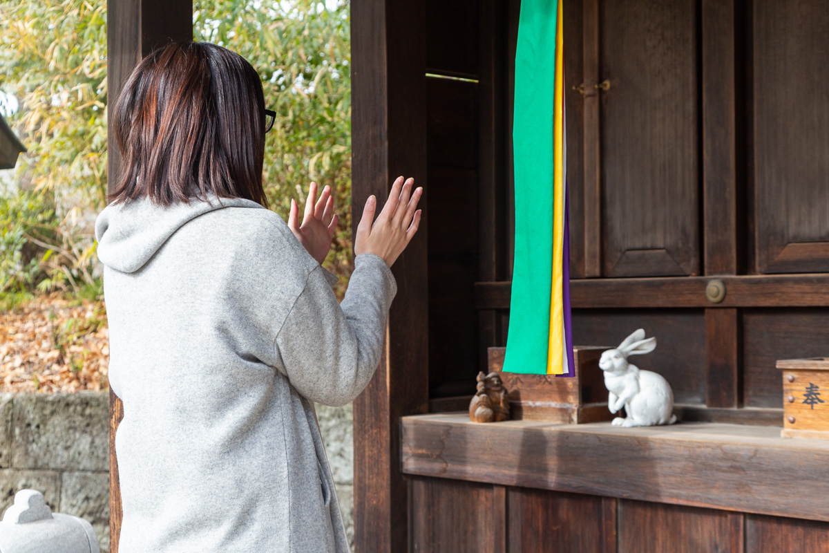こちらは、二礼四拍手一礼でお参りしましょう。その際「幸魂(さきみたま)奇魂(くしみたま)守給(まもりたまえ)幸給(さきわえたまえ)」と、神拝詞(となえことば)を念じると、より大きなご縁を授かることができるそう。