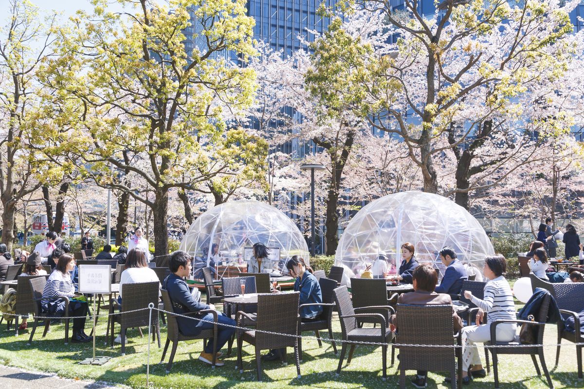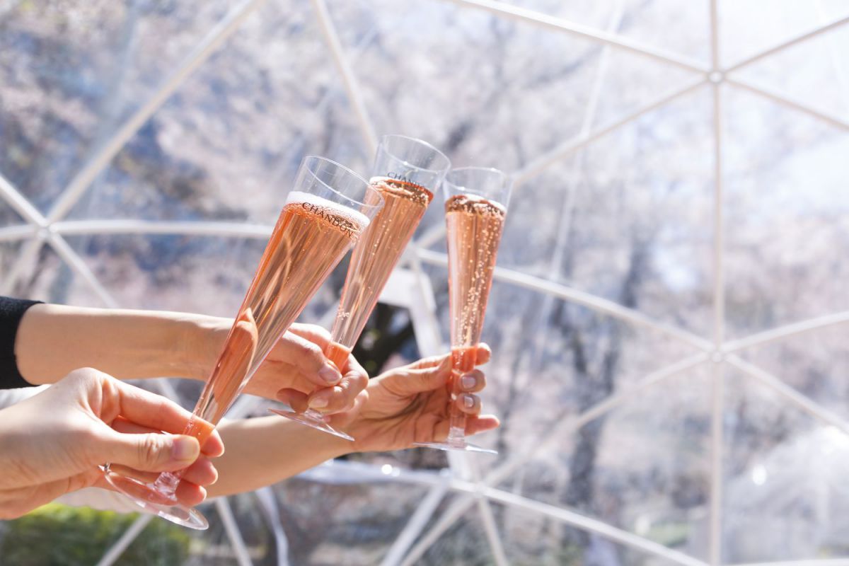 昨年好評だったドーム型のテント席「シャンドン スイート」が今年も登場。あたたかい空間でゆったり過ごせるから夜桜鑑賞も安心です。