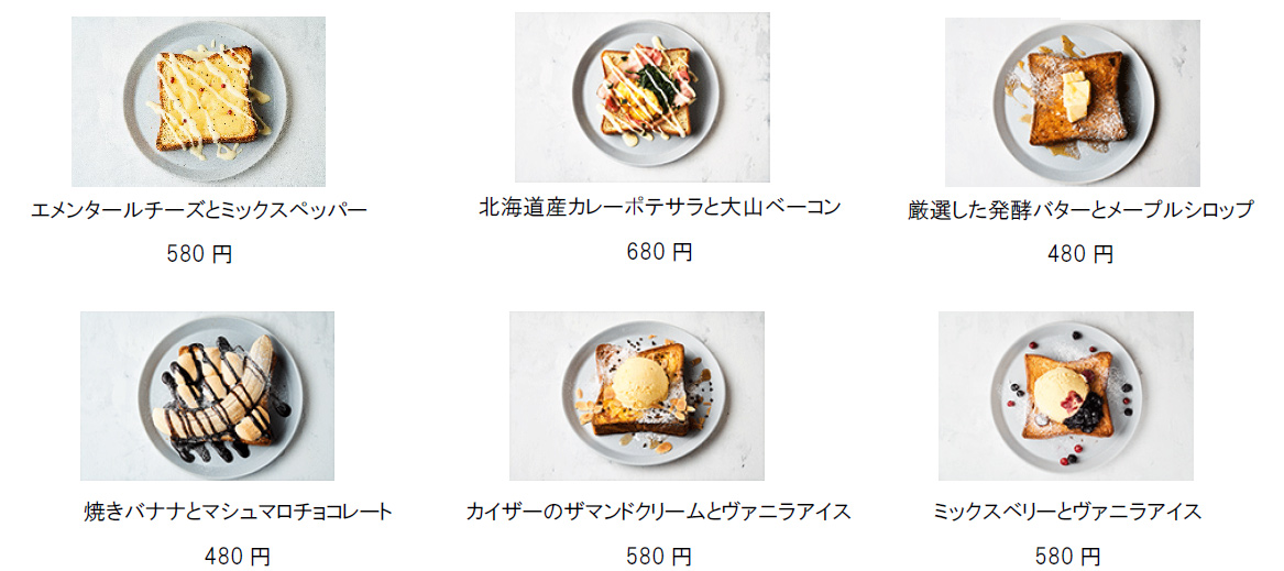 スイーツ好きのために、ヴァニラアイス乗せトーストや、メープルシロップと発酵バターのトーストなども用意されていますよ。