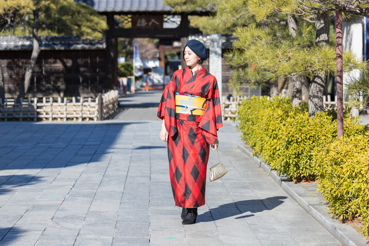 ちょっとモダンなコーディネートを楽しみたいなら、帽子やブーツを着物に合わせる「足利スタイル」もおすすめです。ブーツや帽子だけ持参すれば、ハイカラコーディネートが完成しますよ。