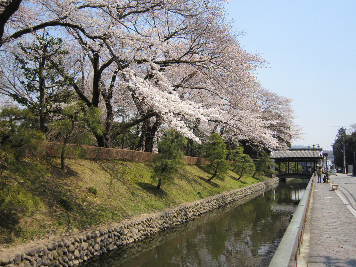 また、春になるとお堀の周りや境内に桜が咲き誇り、写真に華やかな彩りをプラス。