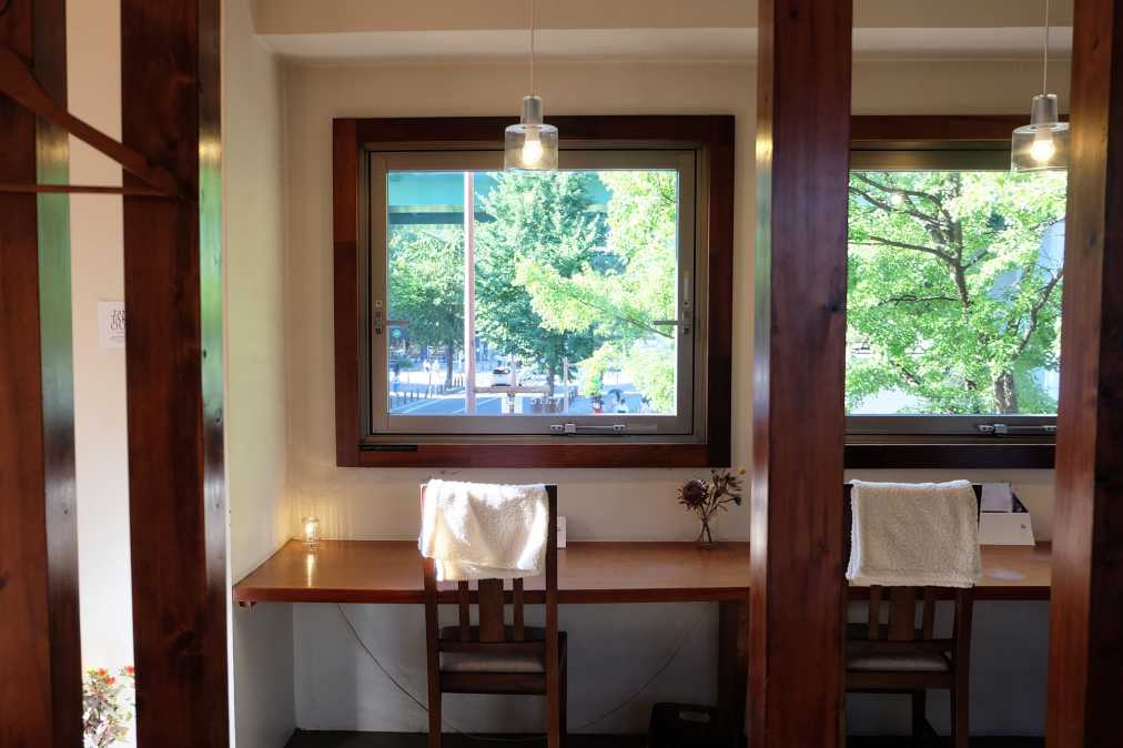 店内には、カウンター席やテーブル席を完備しています。オススメは、若宮大通の木々を眺めながら食事ができるカウンター席。癒されながら、ゆったりとした時間を過ごせます。