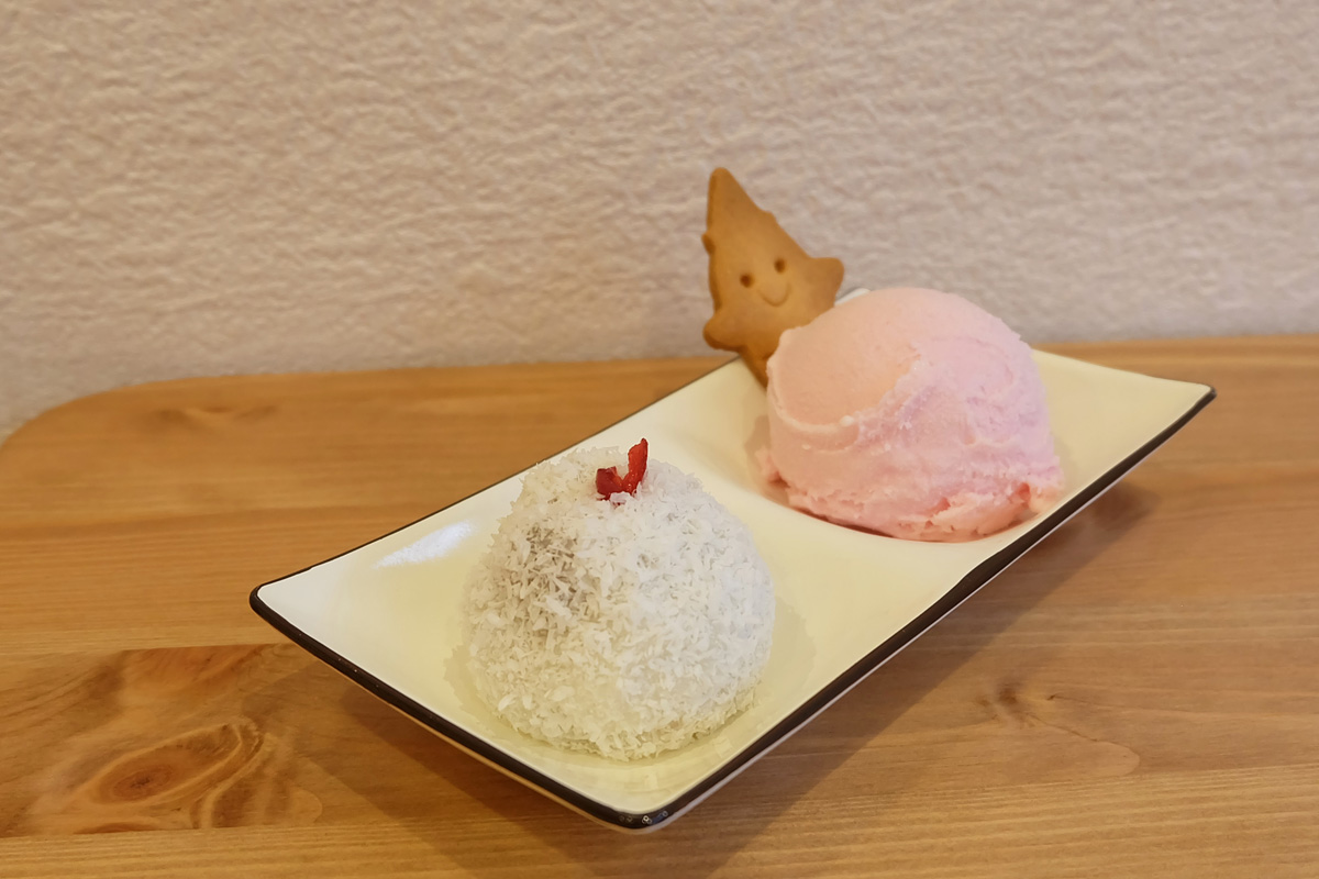 おはぎとアイスが楽しめるセットメニュー(330円〜)も人気です。香料や人工甘味料を使用しないこだわりのアイスは8種類のなかから選ぶことができ、どれも濃厚で食べる価値あり!おはぎと一緒に味わってみては。