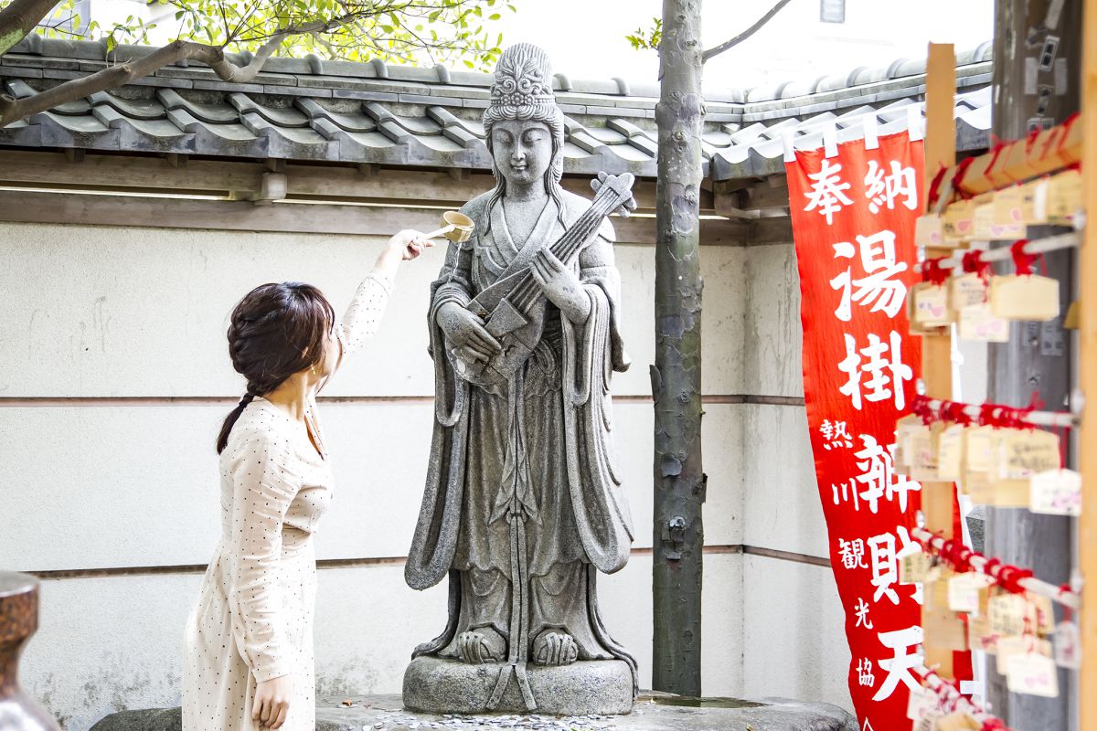 「お湯かけ弁財天」に縁結び&金運アップをお願い