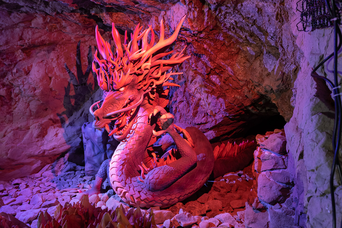 少し進むと「ゴーゴー」と低い鳴き声が聞こえてきます。恐る恐る進んでいくと、“龍神”を発見!