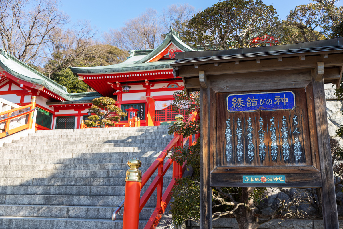 織姫公園内にある足利織姫神社は、縁結びの神様として話題のスポットです。