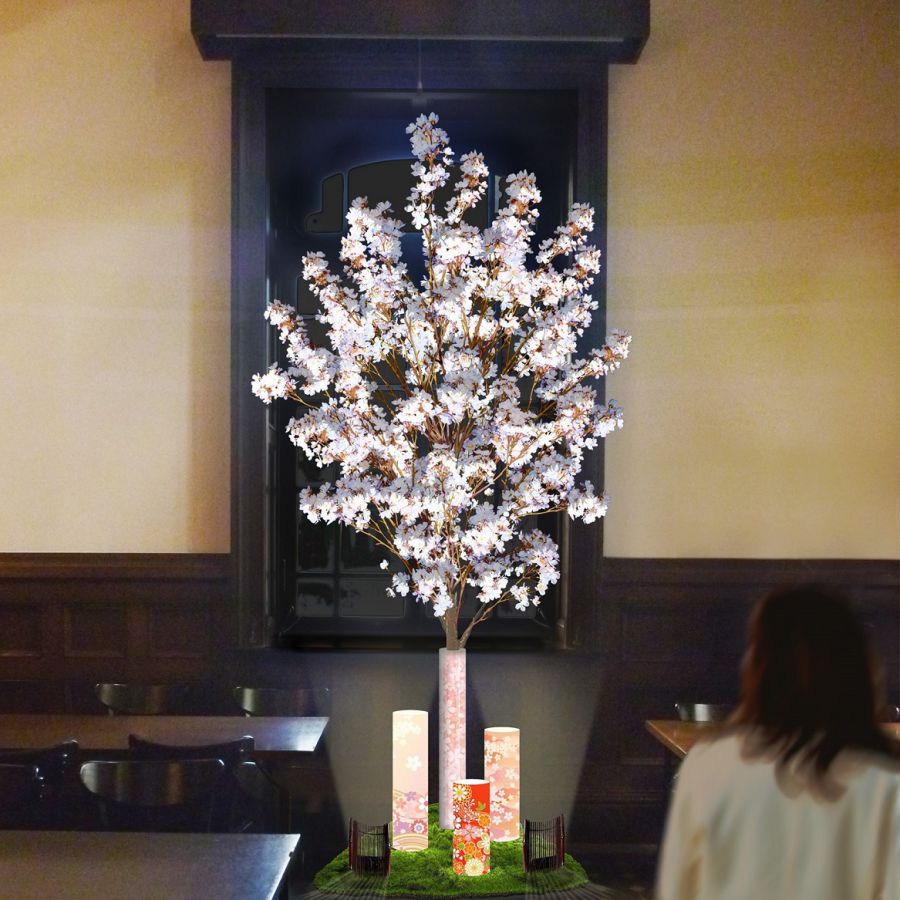 三菱一号館美術館併設の「Café1894」は、明治時代に銀行営業室として使われていた空間を復元したミュージアムカフェ・バー。クラシックな趣と、吹き抜けの高い天井が人気のお店で開催される「HANAMIフェア」は今年で4回目に。店内の飾られた2本の大きな桜の木は高さ3mもあり、夜にはライトアップされるので、より幻想的な雰囲気が広がります。