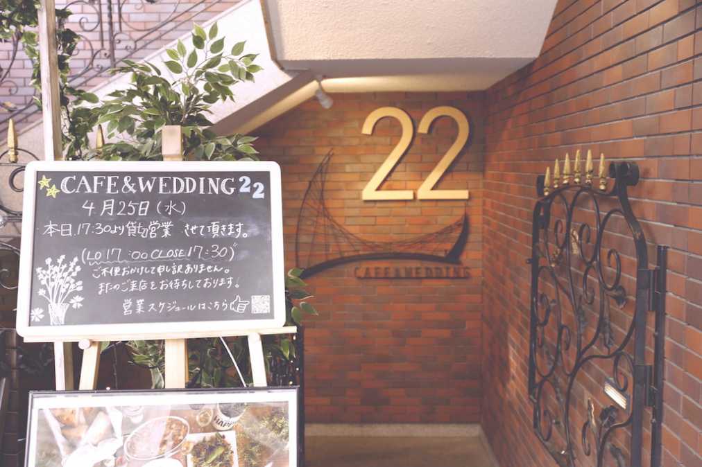 人気のお出掛けエリア吉祥寺駅が最寄り駅。レトロな雰囲気のレンガのビルの地下に「CAFE&WEDDING 22」はあります。「22」の看板を見逃さないようにお店を目指しましょう。