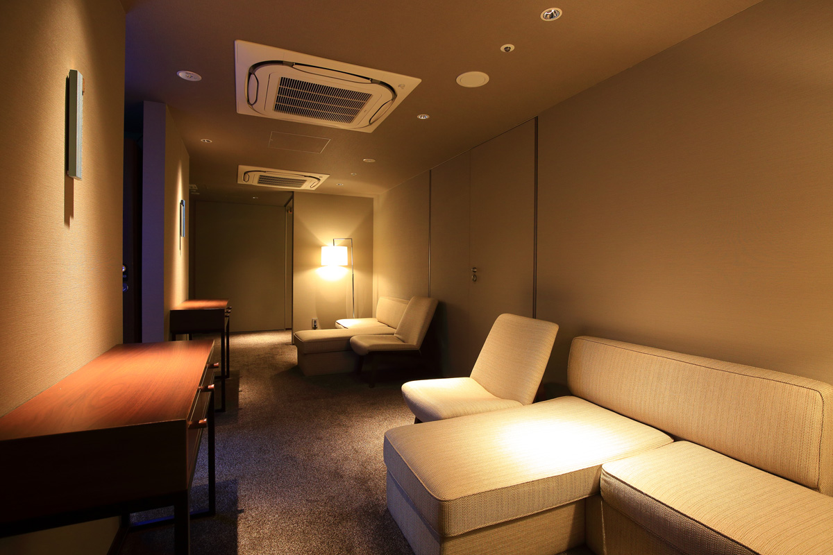 広々とした待合ロビーには大きなソファが配されて居心地抜群。フリーで使えるタブレットも置いてあるので、ちょっとした待機時間にはここで調べものやゲームをして過ごすのも◎。また各部屋には、電話通話も可能なスマートフォンもあり滞在中は無料で使用できます。外に持ち出すこともできるので、ぜひ旅に役立ててください。