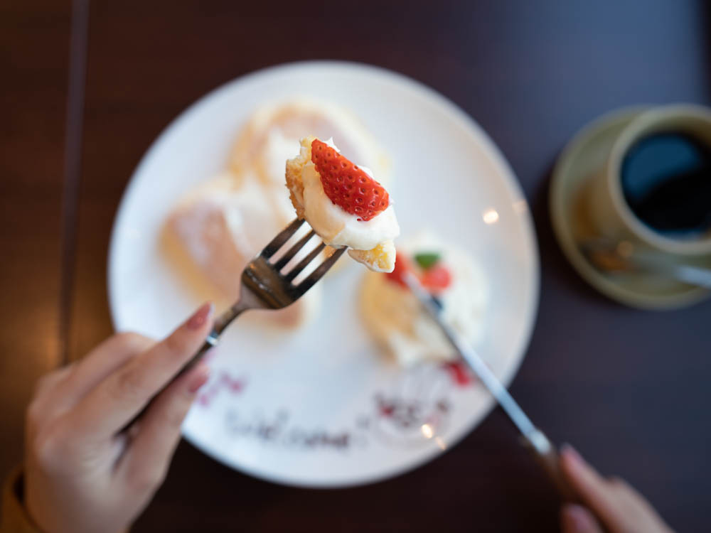 ナイフを入れると、つぶしてしまいそうになるほどの柔らかさ。ただ柔らかいだけではなく、しっとり感もあるので、食べやすいのがポイントです。一見ボリューミーですが、ひとりでもぺろりと食べられちゃいます。