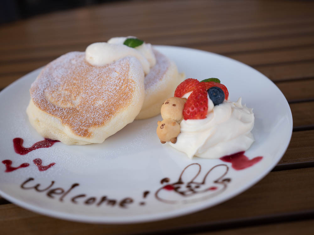 生クリームにカスタードを配合したまろやかなクリームは、ふわふわのパンケーキとの相性も抜群です。