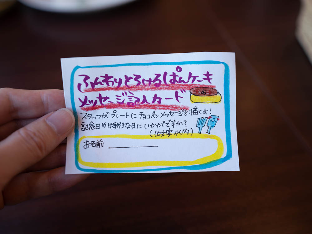 テーブルにオーダーシートがあるので、そこに書いてほしい文字などを記入してお願いすることができます。誕生日や記念日などにもぴったりですね。