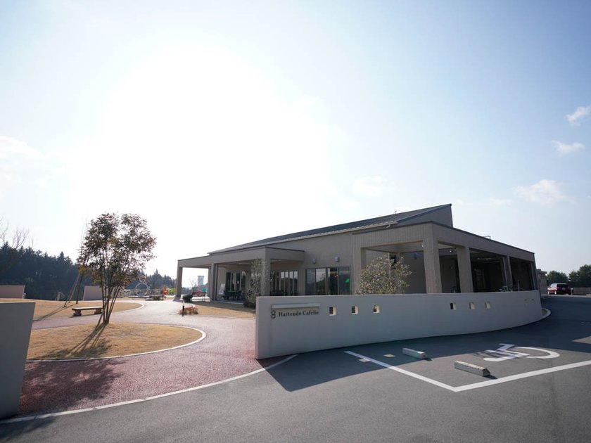 「八天堂カフェリエ」があるのは、広島空港からすぐ近くの高台。空が近く感じられる広大な土地は、抜群のロケーションです!