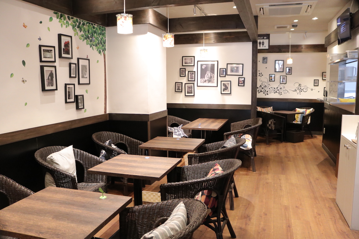 店内はゆったりとした座席で落ち着けます。和カフェといっても“和風”に寄りすぎておらず、ほどよくモダンな印象で気軽に立ち寄りやすい雰囲気です。