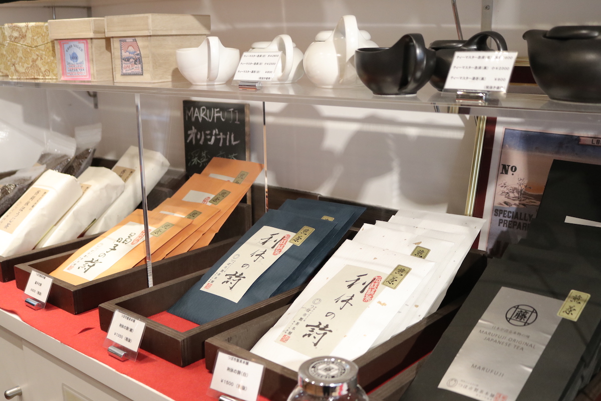 MARUFUJIオリジナル煎茶をはじめ、店内でいただける茶葉や茶器も購入できるので、気に入ったら自宅用やギフト用に手に入れるのも◎。香り高いお茶の世界に足を踏み入れてみては?