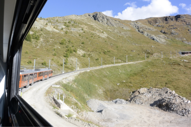 鉄道ファンなら、ツェルマットに滞在の際はまずゴルナーグラート登山鉄道で展望台を目指して欲しいトコロ!!山頂3130mから臨むマッターホルンやブライトホルン、モンテ・ローザの山々とゴルナー氷河のコラボレーションに圧倒されますよ。窓を全開に出来る登山鉄道ならではの、大自然の空気をダイレクトに感じれば、爽快な風と一緒に日ごろのストレスも一気に吹き飛んじゃいます。