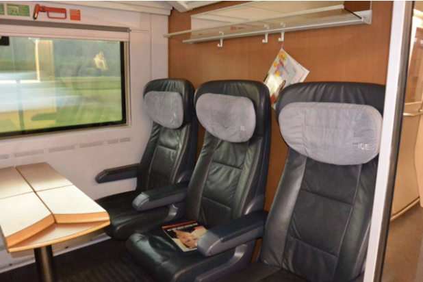 ちなみに!車内には個室もあるのでお子様連れの家族旅行でも気兼ねすることなくリラックスした鉄旅が可能で す。もちろん、個人旅行でも1等車なら革張りのゆったり3列シートでのびのび過ごすことが出来ます。スイスへお出掛けの際、お目当ての都市間を少しでも早く移動したい場合には、是非!国境をまたぎ活躍する新幹線「ICE」へのご乗車をおススメします☆